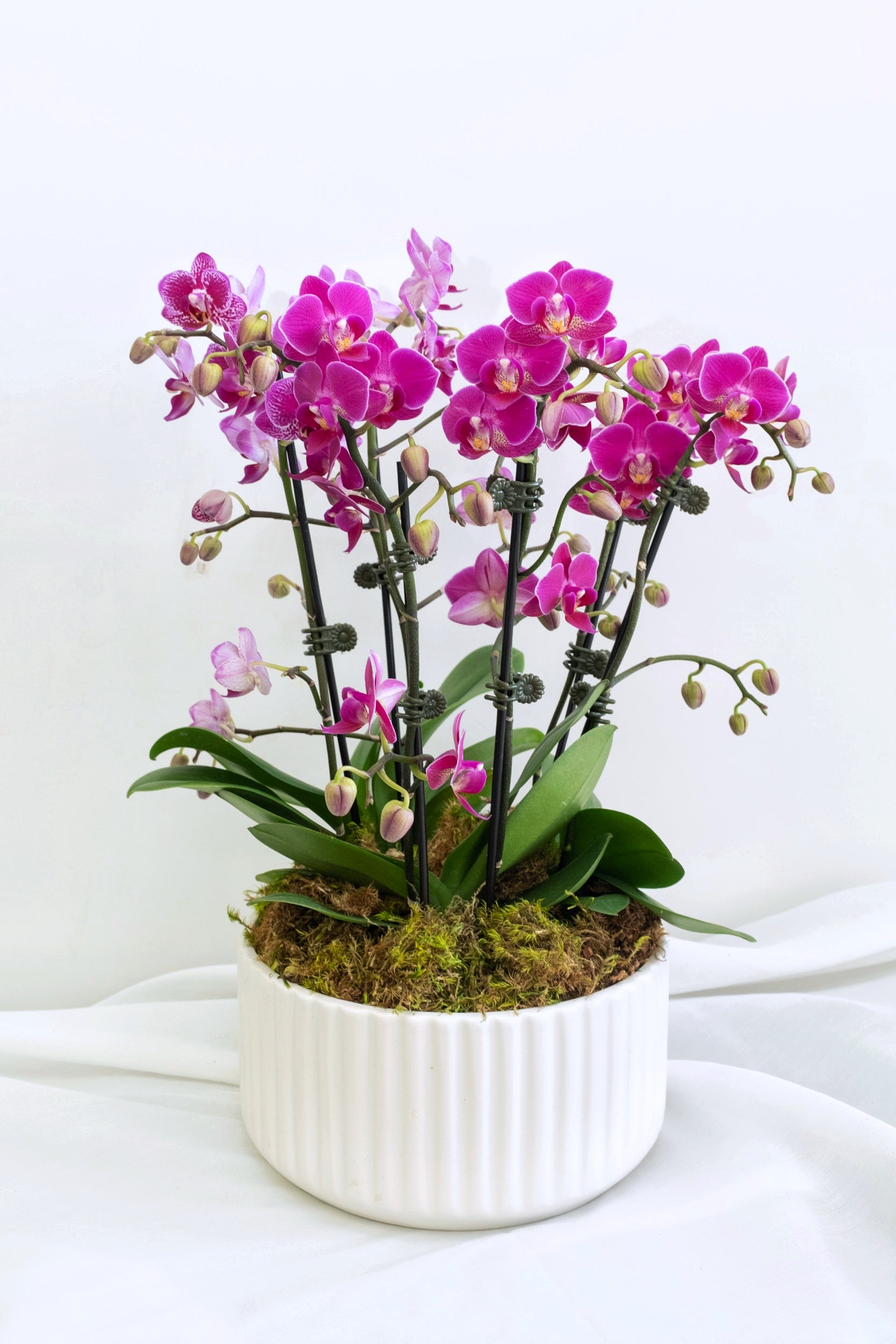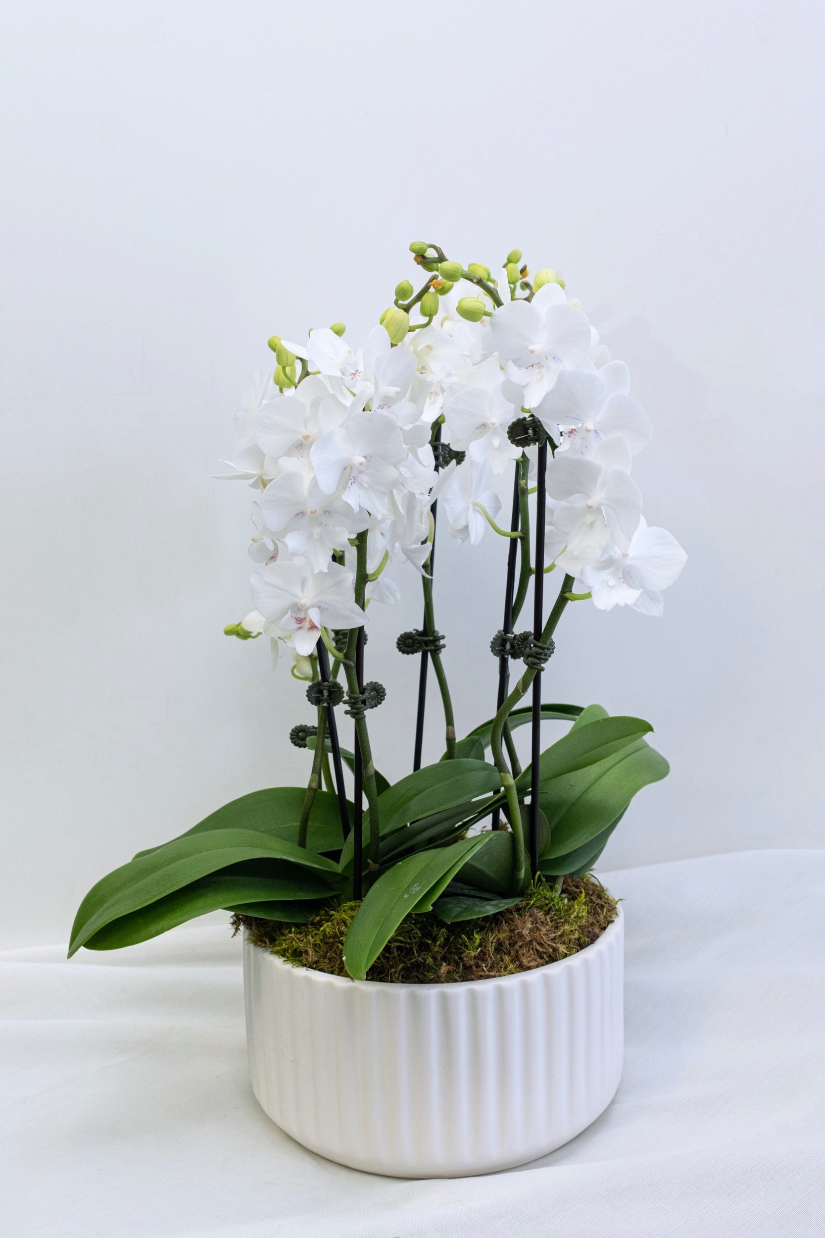 Small Waterfall Phalaenopsis Orchid in a ceramic pot.