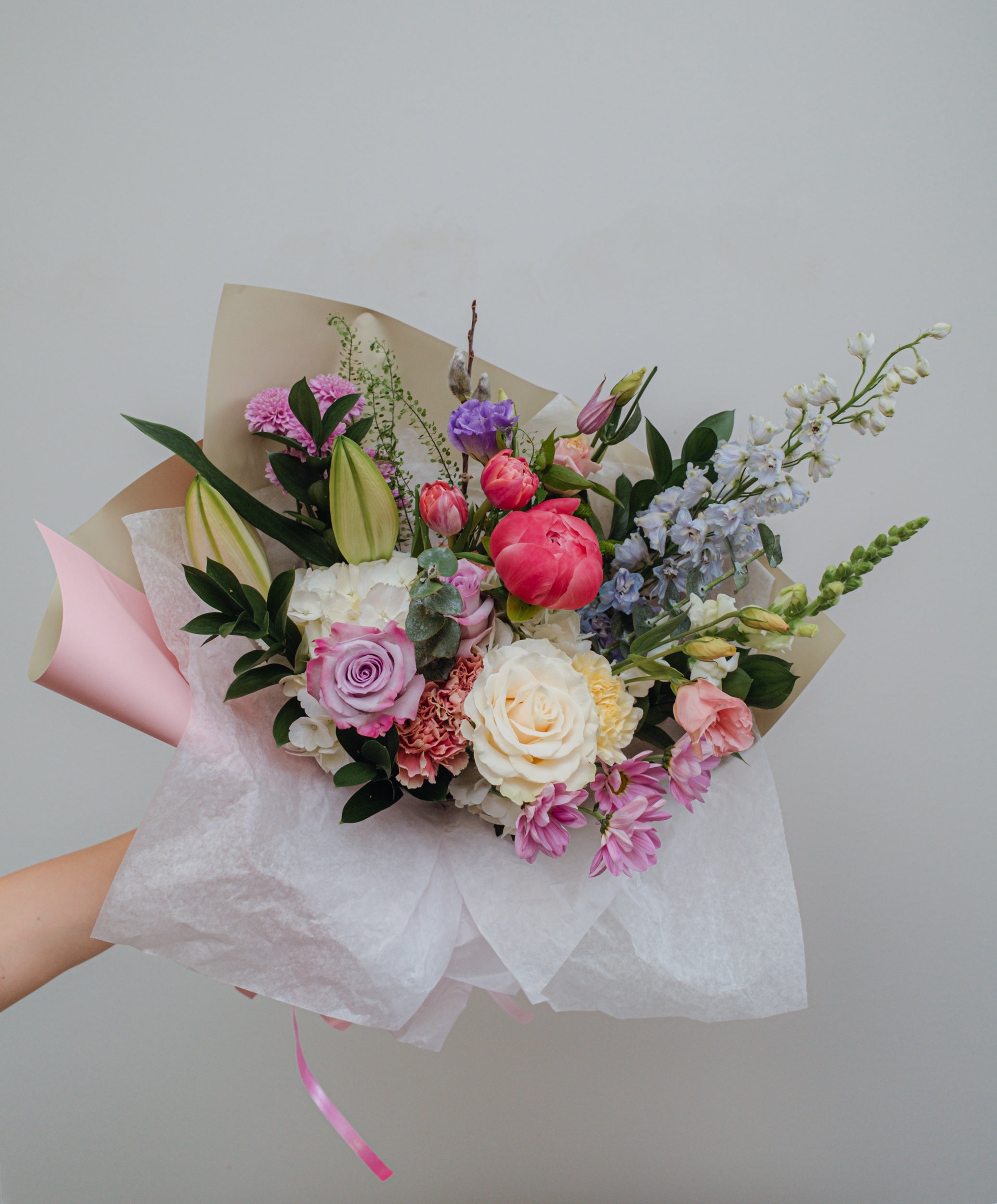 Please contact us for details. Due to seasonal availability, the composition may vary, and substitutions may be made with comparable flowers.